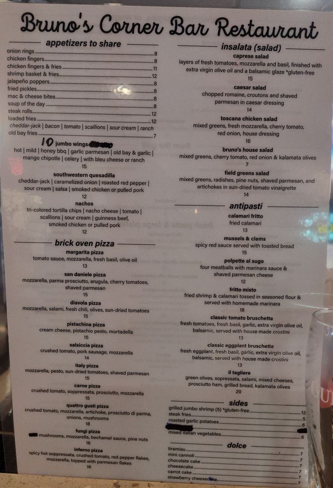 As you explore the menu, you'll discover a cozy ambiance that makes every meal at Bruno's feel like a celebration of family and flavor.